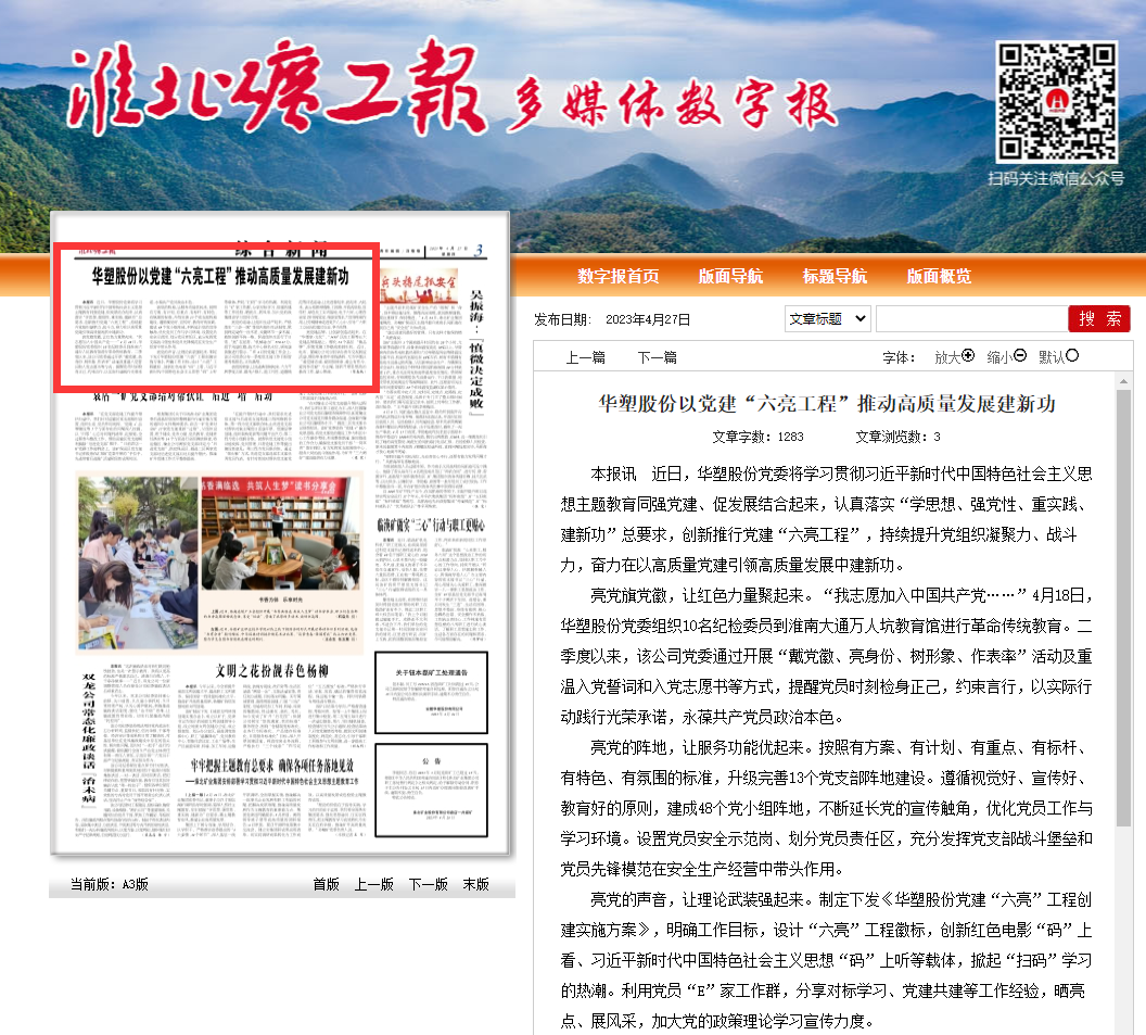 《淮北矿工报》4月27日三版头条:yd2333云顶电子游戏股份以党建“六亮工程”推动高质量发展建新功