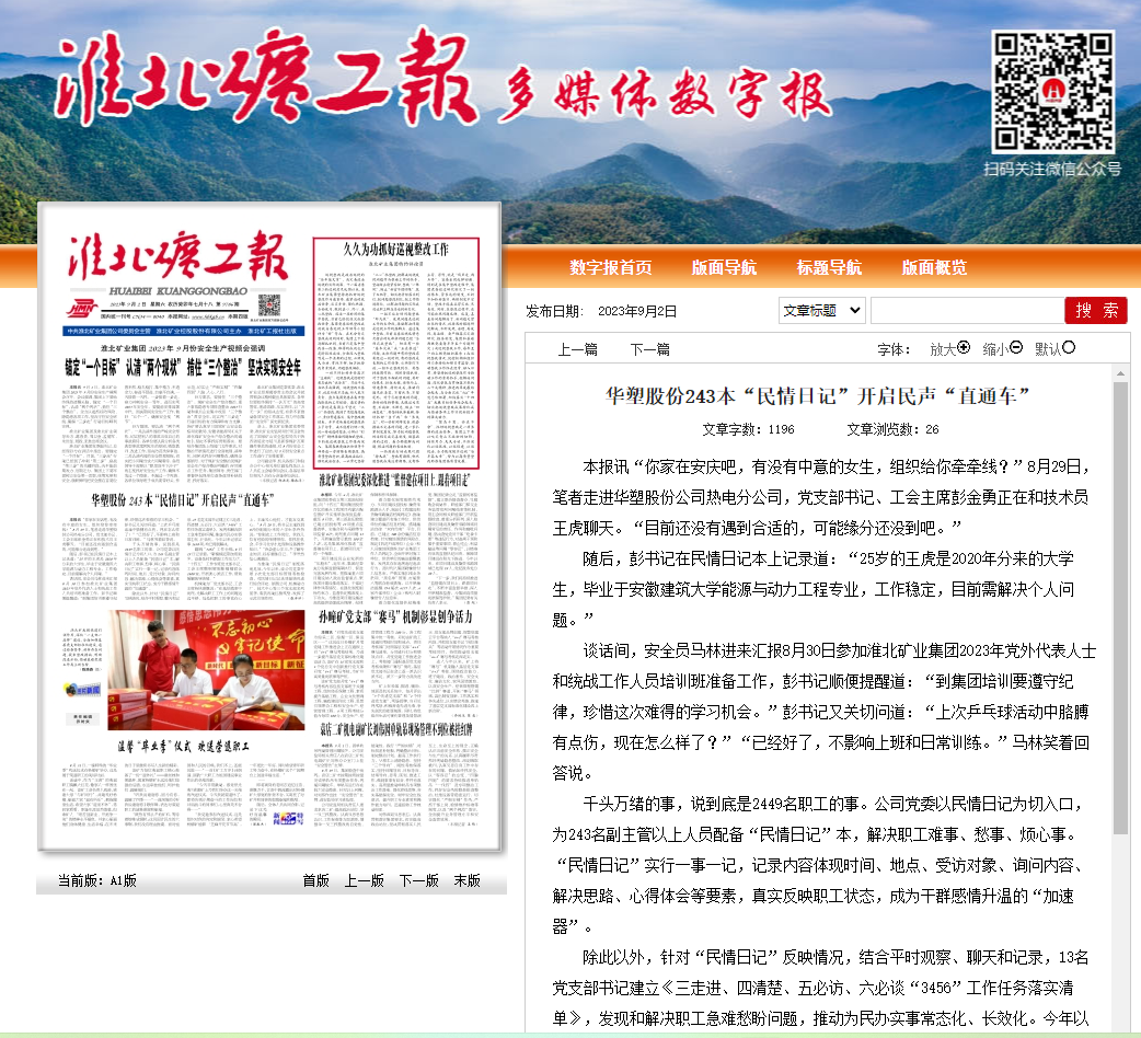 《淮北矿工报》9月2日一版:yd2333云顶电子游戏股份243本“民情日记”开启民声“直通车”