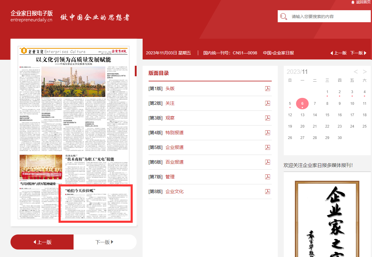 《企业家日报》11月3日八版:今天咱们拉拉呱