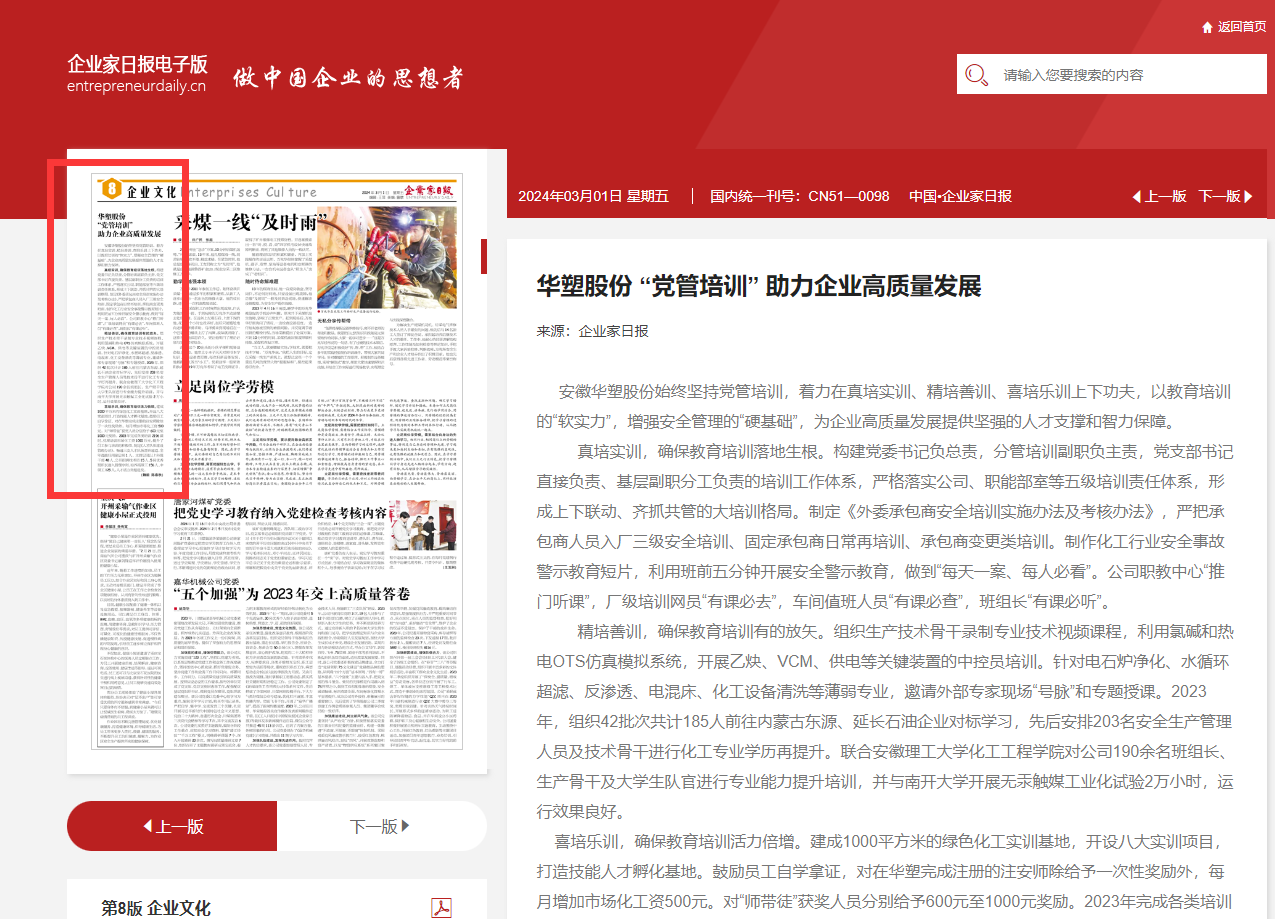 《企业家日报》3月1日八版头条:yd2333云顶电子游戏股份 “党管培训” 助力企业高质量发展